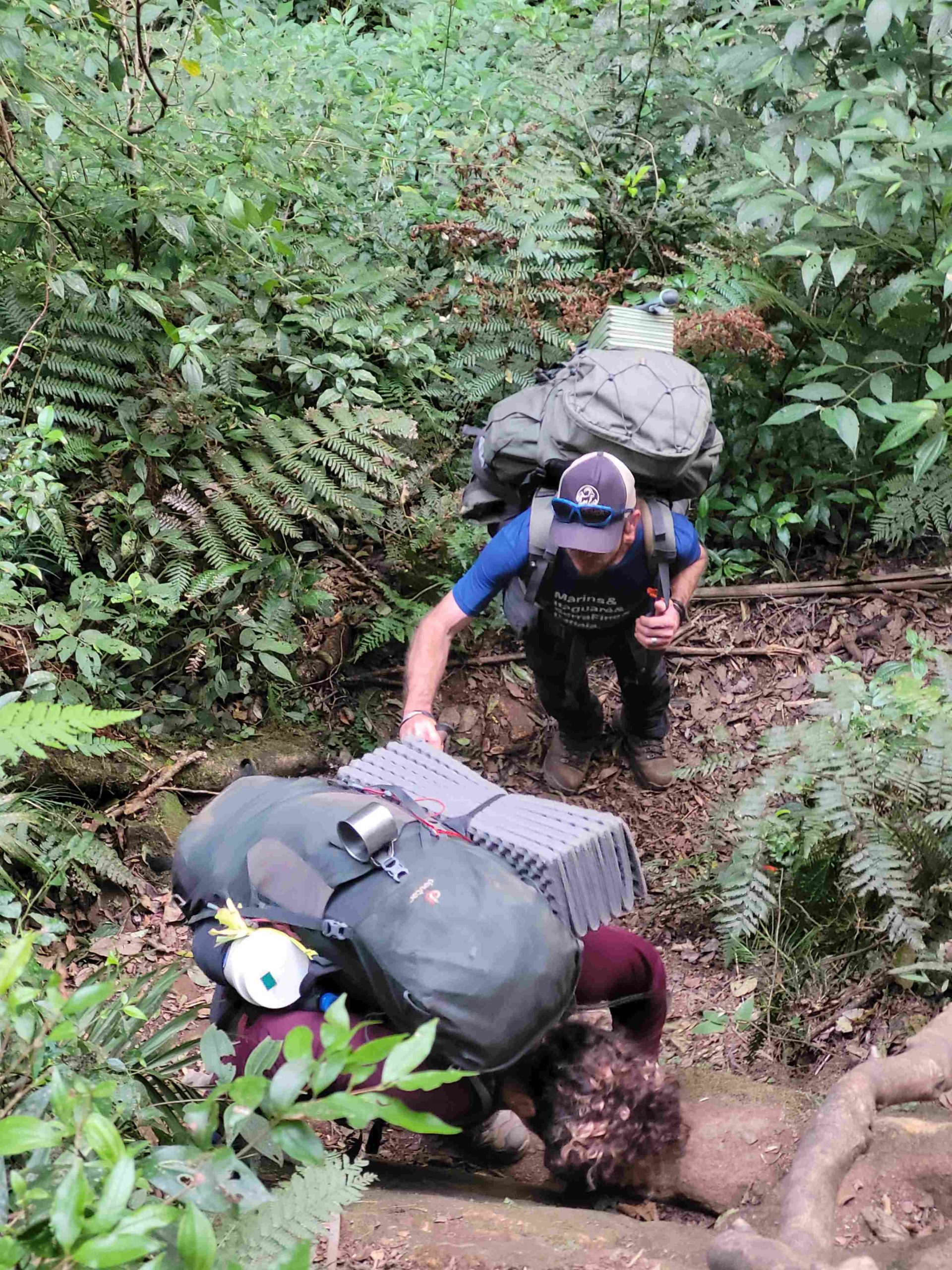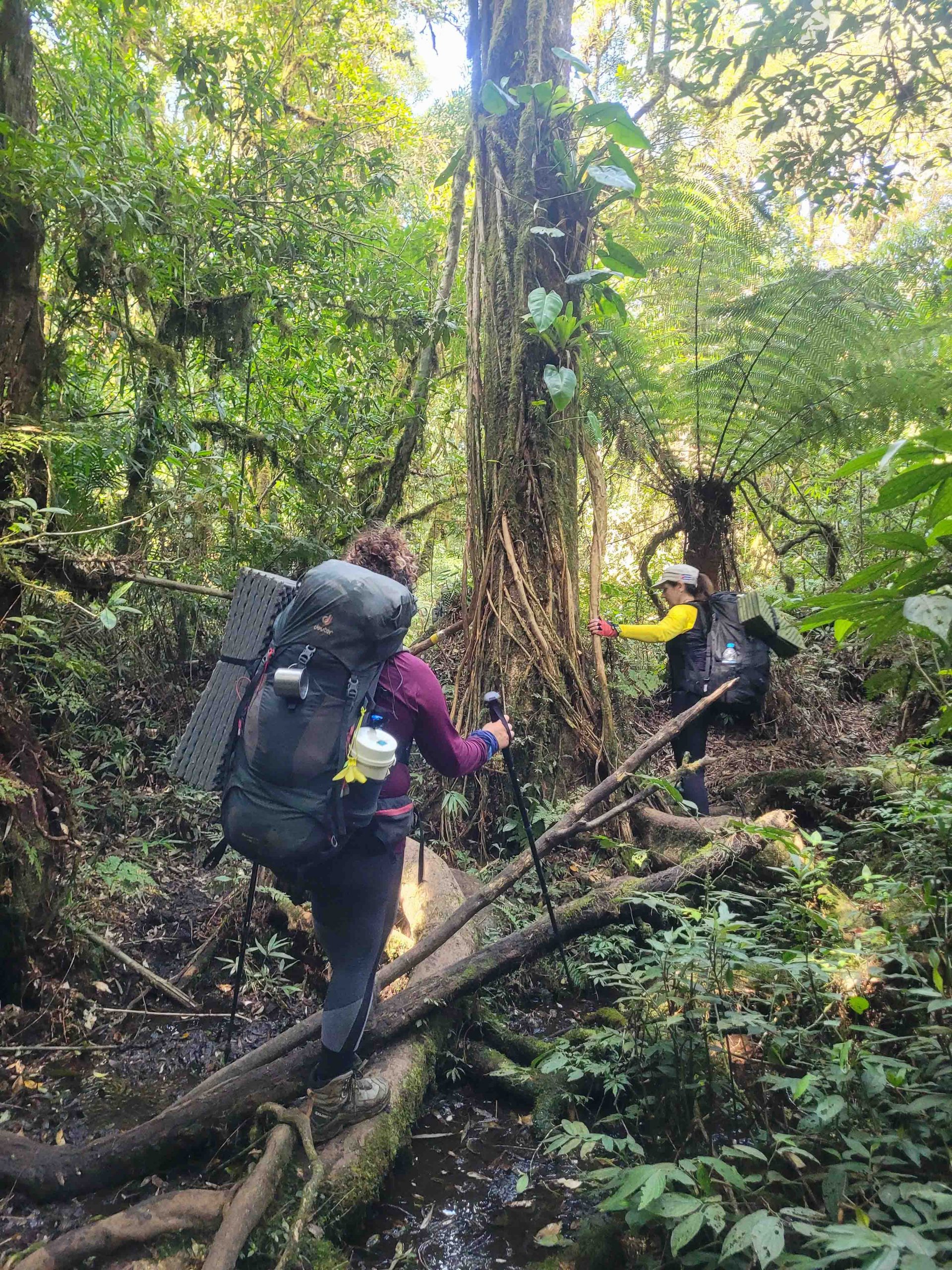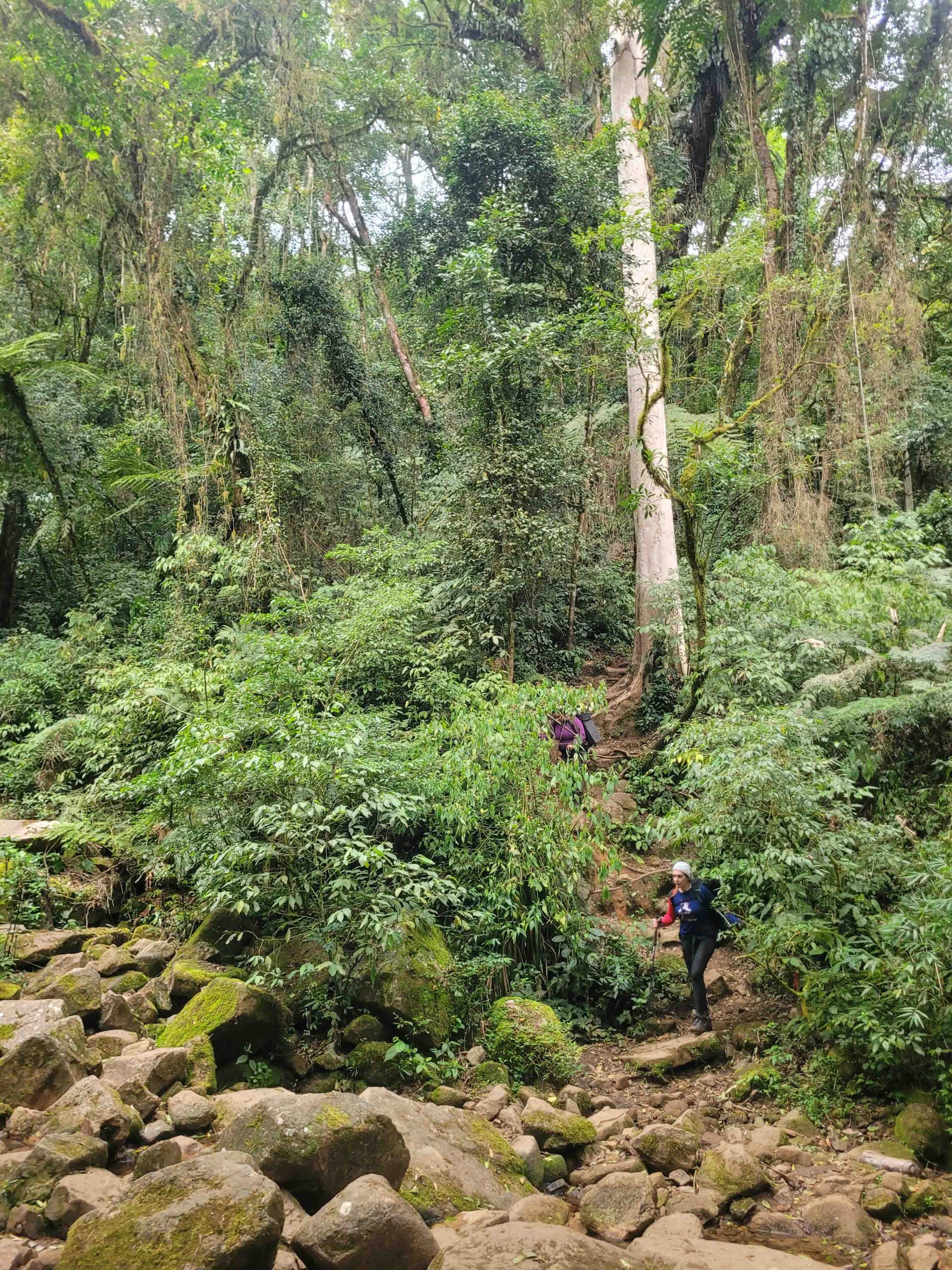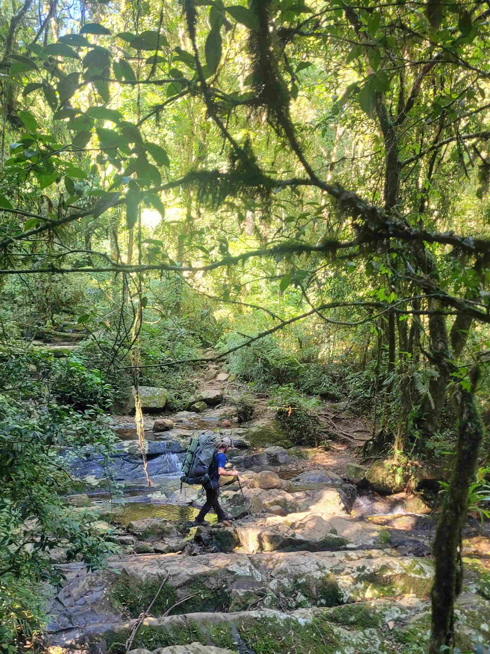 A trilha mesmo exigente do começo ao fim, revela uma riqueza imensurável de mata atlântica densa e trechos cruzando rios e passando por pequenas cachoeiras, o que facilita muito em nossa logística de água!